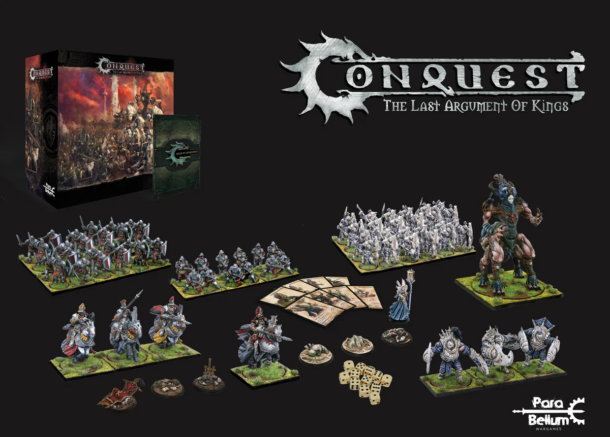 Conquest par Para Bellum est un énorme jeux de Rank n Flank au format 38mm qui vous portera dans lunivers fantastique d’Ea ou une dizaine de faction se dispute leur territoire, certaines pour vivre en paix d’autres adeptes de la guerre…